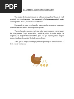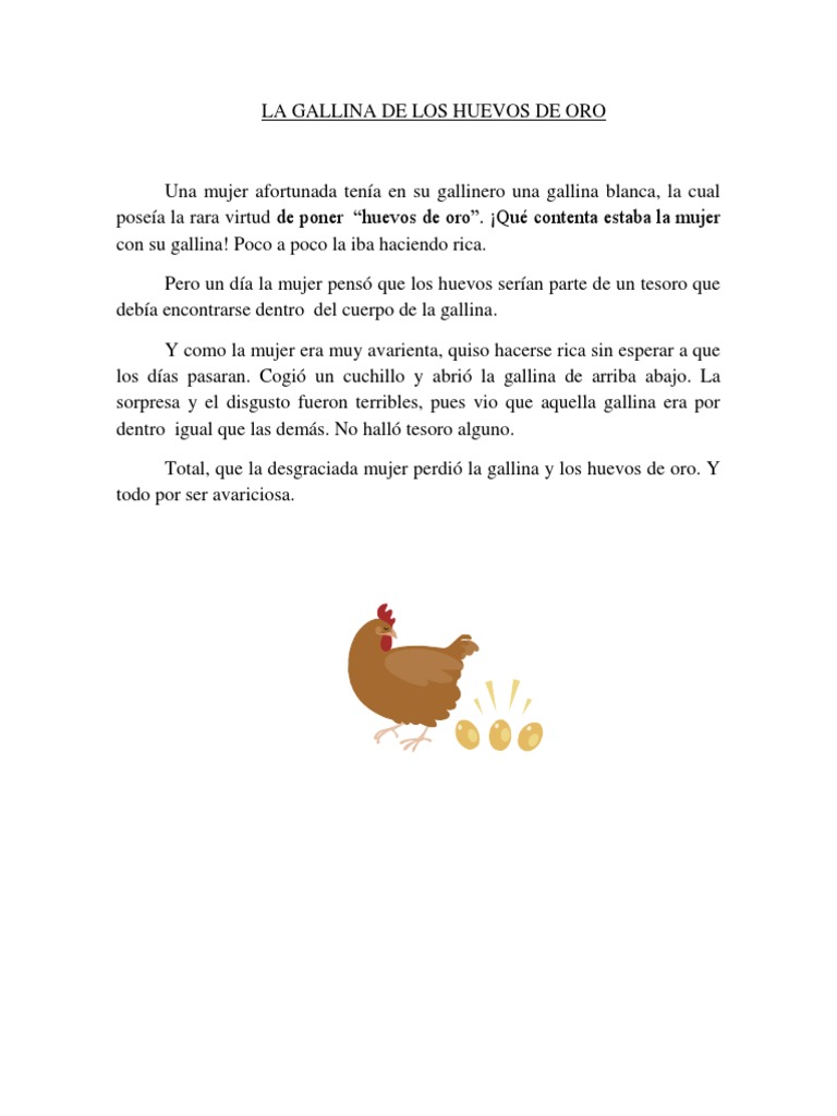 Una sola reflexin final. La fbula de la gallina de los huevos de oro Haba una vez una pareja de campesinos pobres que soaban con un mejor futuro pero pese a su. Buen hombre he odo tus lamentaciones y.