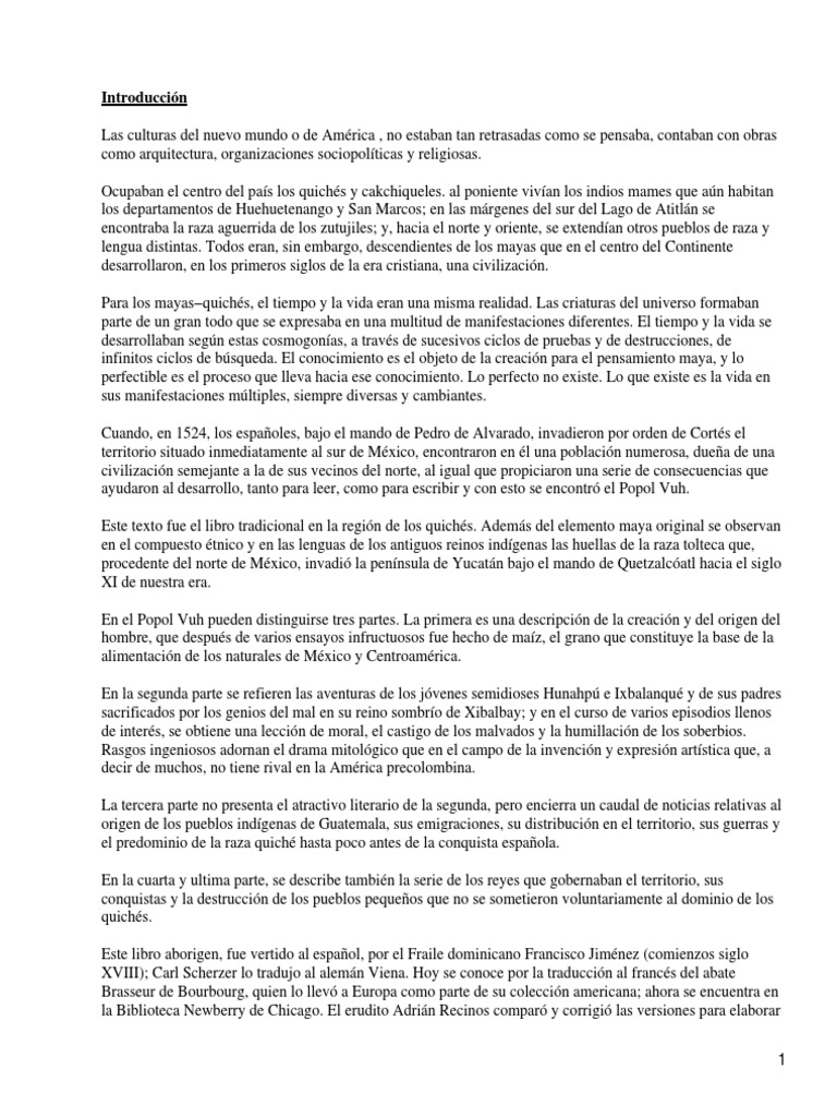 Para el Popol Vuh conferenciaron sobre la vida y la claridad cmo se har para que aclare y amanezca p. Que ms que un sentido histrico tiene un valor e importancia hablando de lo religioso. O Libro del Consejo por ejemplo segn algunos estudios proviene de fuentes.
