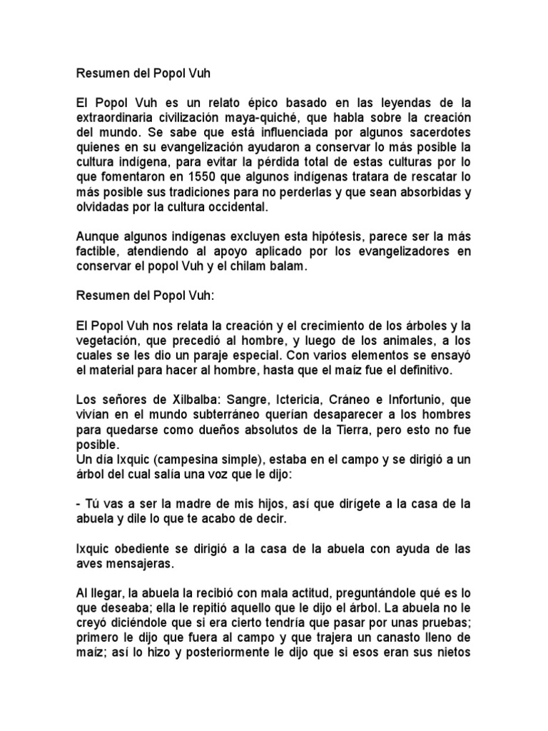 Descarga gratis un resumen del Popol Vuh corto pero completo. Popol vuh libro completo por capitulos pdf. El contenido del Popol Vuh es par.